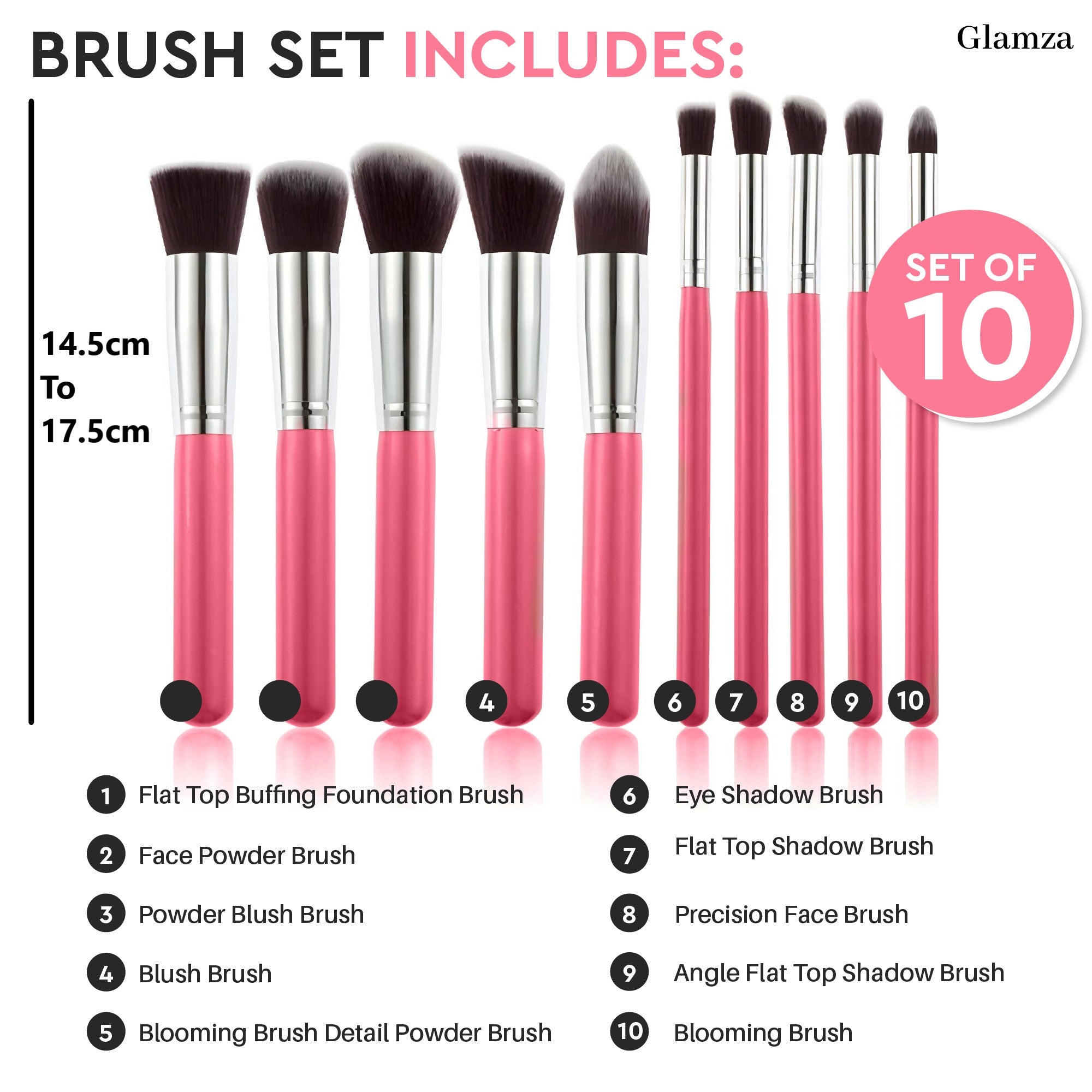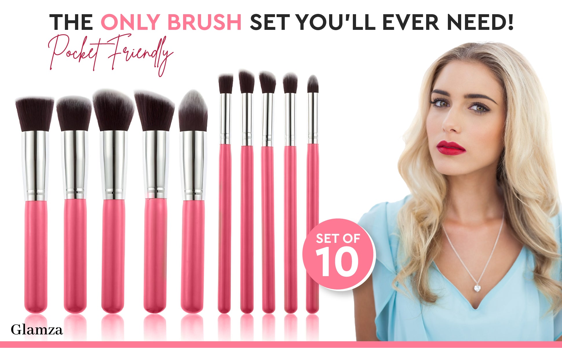 The Glamza 10pc Makeup Brush Sets Are Perfect for Professional or Home Use and Serve as A Great Starter Pack for Newly Skilled and Budding Makeup Artists. With 2 Popular Colours to Choose from the Compact, Solid and High-Quality Synthetic Brushes Will Give You Results You Need When it Matters Most!